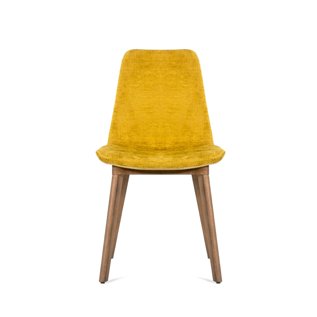∙ Η καρέκλα Rose, σχεδιασμένη από την Anesis, κατασκευασμένη από μασίφ μέλιο, καλουπωτή πολυουρεθάνη και ταπετσαρία.
