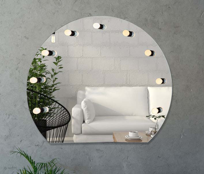 ∙ Καθρέφτης τοίχου διακοσμητικός Marlon, σε οβάλ σχεδιασμό, χωρίς κορνίζα και με μικρές led λάμπες περιμετρικά καθιστώντας τον ιδανικό ως καθρέφτη vanity.