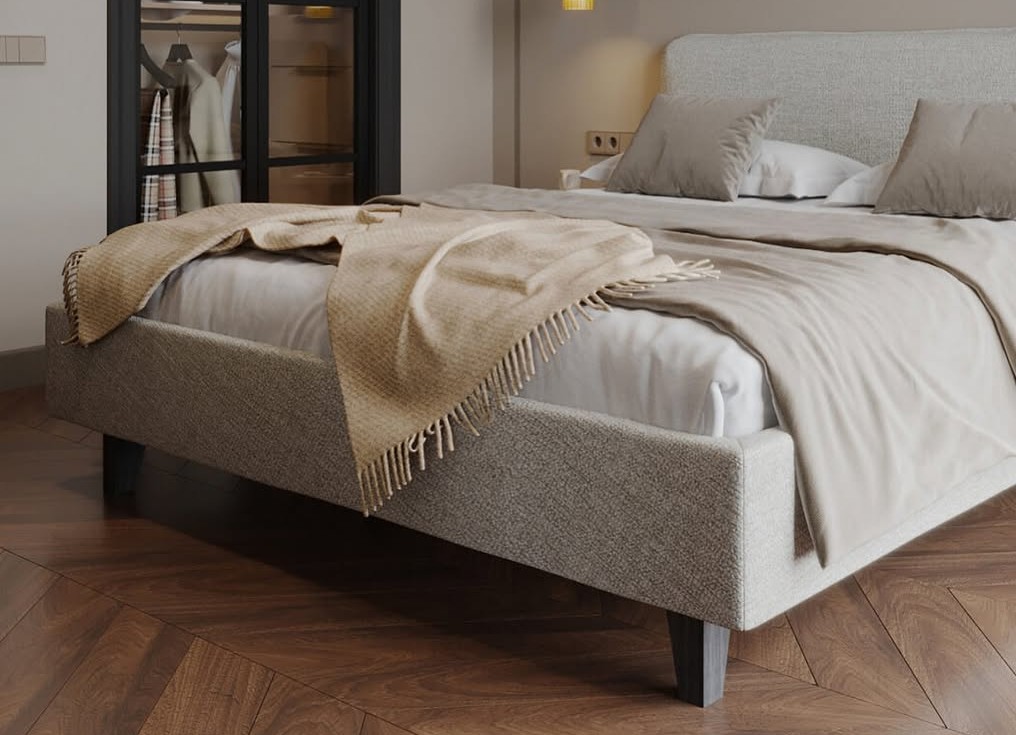 ∙ Πρόταση υφασμάτινου κρεβατιού, κατασκευασμένο απὀ μασίφ ξύλο επενδεδυμένο με ύφασμα επιλογής.