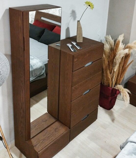∙ Πρόταση κρεβατοκάμαρας Fly me Away, κατασκευασμένη από μασίφ ξύλο, αποτελούμενη από κρεβάτι με κεφαλάρι με led φωτισμό στο κέντρο του, δύο κομοδίνα και συρταριέρα συνοδευόμενη από ολόσωμο καθρέφτη με συρτάρι στην βάση του.