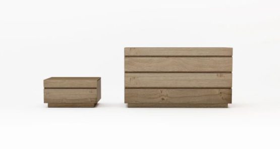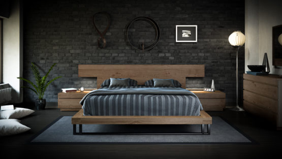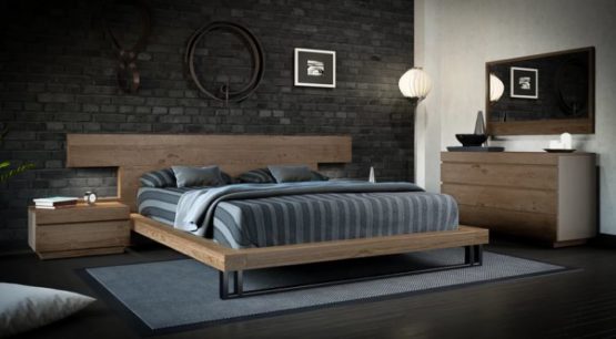 ∙ Πρόταση κρεβατοκάμαρας Gold από Deatro, σε απόλυτα μίνιμαλ σχεδιασμό, κατασκευασμένη από μασίφ ξύλο και μεταλλικά πόδια στήριξης, αποτελούμενη από κρεβάτι με έντονο κεφαλάρι, δύο κομοδίνα, συρταριέρα και επιτοίχιο καθρέφτη που ακολουθούν απόλυτα τον σχεδιασμό του κρεβατιού.