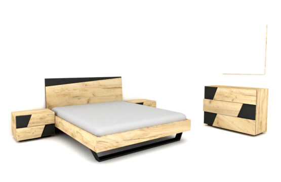 ∙ Πρόταση κρεβατοκάμαρας Karmen, κατασκευασμένη από βακελίτη υψηλής ποιότητας σε μίνιμαλ σχεδιασμό με μαύρες ματ λεπτομέρειες, αποτελούμενη από κρεβάτι με κεφαλάρι, δύο κομοδίνα και συρταριέρα συνοδευόμενη από καθρέφτη.