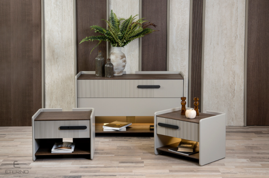 ∙ Την κρεβατοκάμαρα lazy την χαρακτηρίζει η μοντέρνα αισθητική και η ασύγκριτη ποιότητα. Μοναδικό της στοιχείο είναι οι κάθετες γραμμές στα κομοδίνα και την τουαλέτα που της προσδίδουν ένα διαφορετικό ύφος.