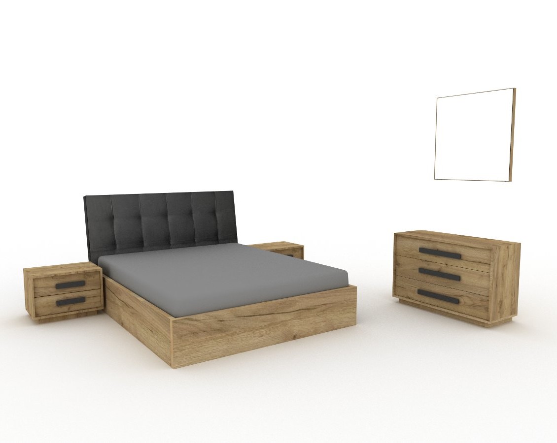 ο σετ κρεβατοκάμαρας SOHO αποτελείται από ένα διπλό κρεβάτι, δύο κομοδίνα, τουαλέτα και καθρέφτη. Υπάρχει η δυνατότητα, ανάλογα με τις προτιμήσεις σας, το κεφαλάρι να κατασκευαστεί με κλίση 10ο, ώστε να απολαμβάνετε με μεγαλύτερη άνεση την ανάγνωση ενός βιβλίου ή την παρακολούθηση στην τηλεόραση.