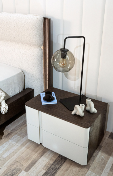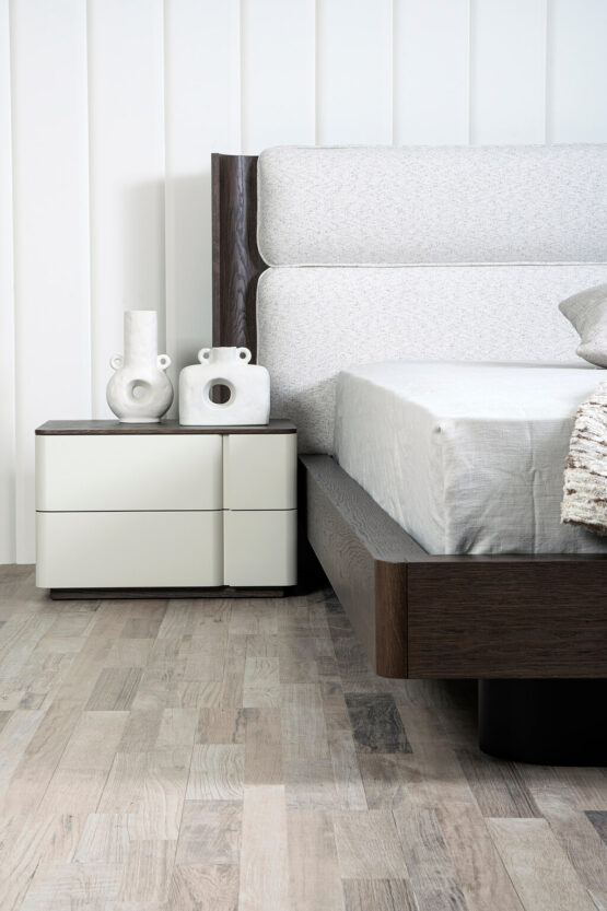 Μίνιμαλ σχεδιασμός με λιτή γραμμή. Η κρεβατοκάμαρα Twin ακολουθεί το μοντέρνο στυλ, δίνοντας έμφαση σε πρακτικές λεπτομέρειες όπως ο ενσωματωμένος φωτισμός δεξιά και αριστερά στο κεφαλάρι.