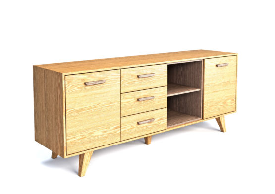∙ Μπουφές Anastasia από Fisiko, κατασκευασμένος από μασίφ ξύλο, αποτελούμενος από ντουλάπια, ράφια και συρτάρια.