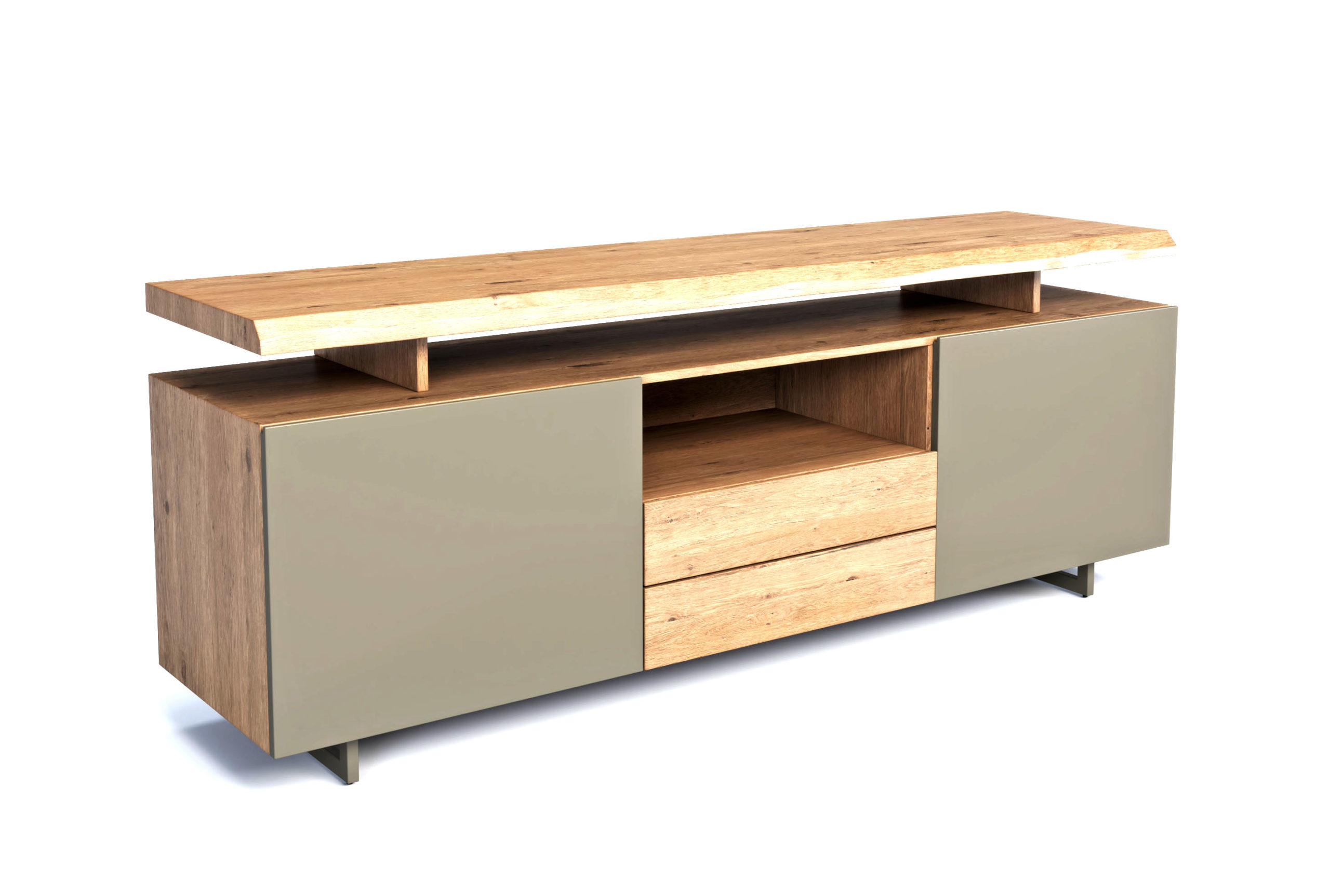 ∙ Μπουφές Forest από Fisiko, κατασκευασμένος από μασίφ ξύλο, αποτελούμενος από ντουλάπια, ράφι, συρτάρια και καπάκι με ξεφραδισμένη την μια του πλευρά.