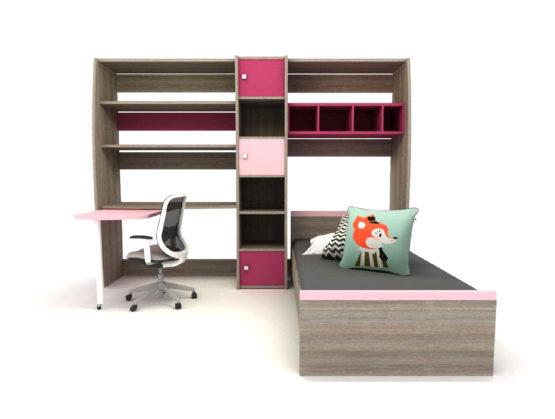 ∙ Παιδική σύνθεση Daisy, κατασκευασμένη από βακελίτη υψηλής ποιότητας και αντοχής, σε μοντέρνο και εργονομικό σχεδιασμό, αποτελούμενη απὀ κρεβάτι, βιβλιοθήκη και γραφείο.
