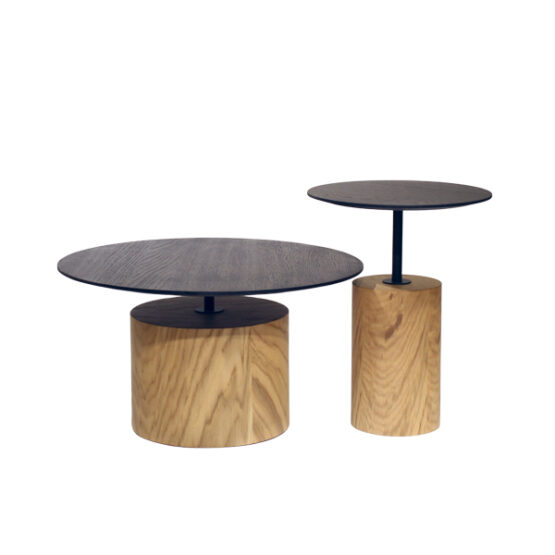 • Σετ βοηθητικών τραπεζιών καθιστικού, αποτελούμενο από δύο τεμάχια, σε διαφορετικές διαστάσεις και αποχρώσεις.