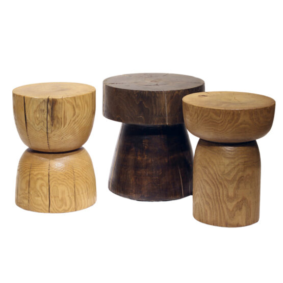 • Σετ βοηθητικών τραπεζιών καθιστικού, αποτελούμενο από τρία τεμάχια, σε διαφορετικές διαστάσεις και αποχρώσεις.