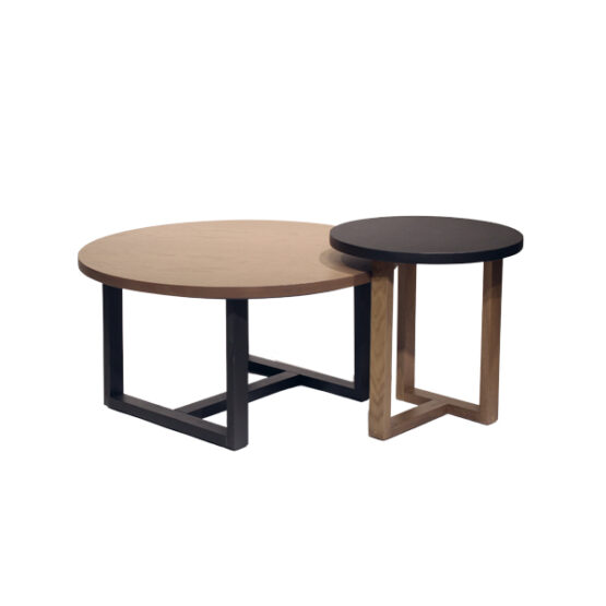 • Σετ βοηθητικών τραπεζιών καθιστικού, αποτελούμενο από δύο τεμάχια, σε διαφορετικές διαστάσεις και αποχρώσεις.
