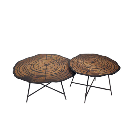• Σετ βοηθητικών τραπεζιών καθιστικού, αποτελούμενο από δύο τεμάχια, σε διαφορετικές διαστάσεις και αποχρώσεις.