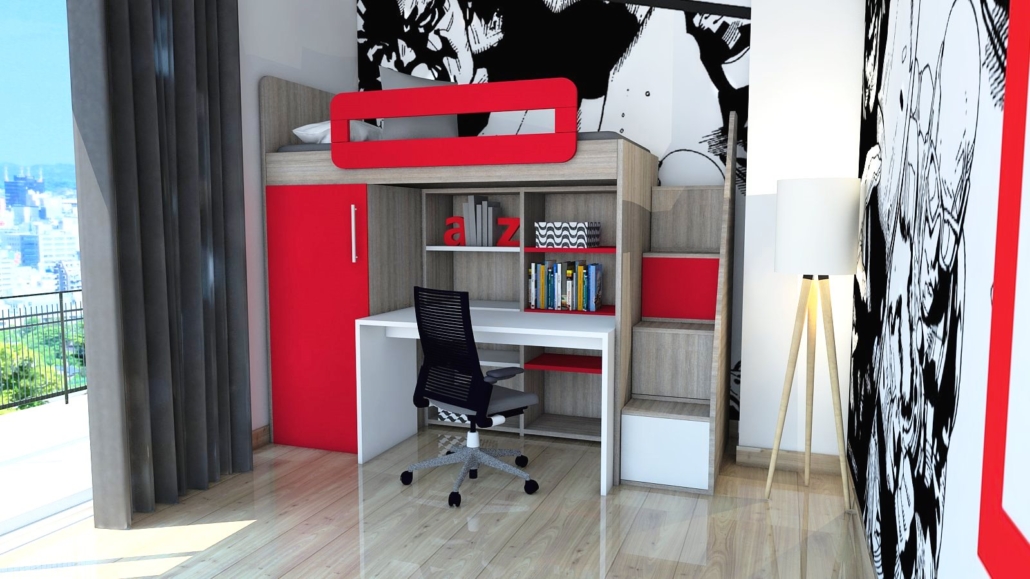 ∙ Ολοκληρωμένη σύνθεση παιδικού/εφηβικού δωματίου, κατασκευασμένη από βακελίτη υψηλής ποιότητας και αντοχής, σε μοντέρνο και εργονομικό σχεδιασμό.
