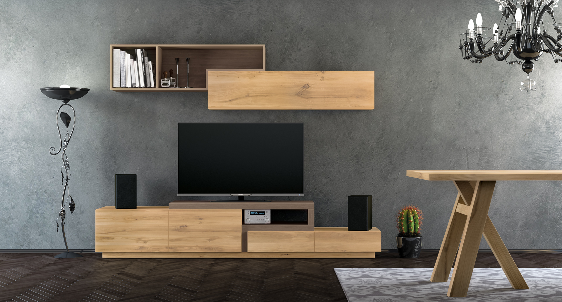 ∙ Σύνθεση τοίχου Crypton από Deatro, προσεκτικά σχεδιασμένη σύνθεση που έρχεται να ομορφύνει το σαλόνι σας και να ανταποκριθεί στις ανάγκες σας για αποθήκευση την ίδια στιγμή.