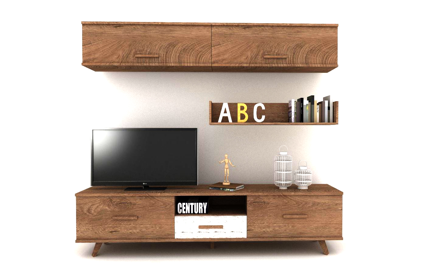∙ Σύνθεση τοίχου Sixties, κατασκευασμένη απὀ βακελίτη υψηλής ποιότητας, αποτελούμενη από αναρτώμενα ντουλάπια και επιδαπέδια βάση με ανοιχτά και κλειστἀ στοιχεία.