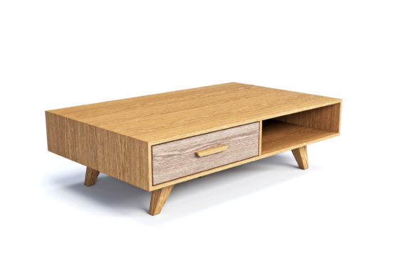 ∙ Τραπεζἀκι μέσης Anastasia από Fisiko, κατασκευασμένο από μασίφ ξύλο, αποτελούμενο από συρτάρι και κλειστό ράφι.