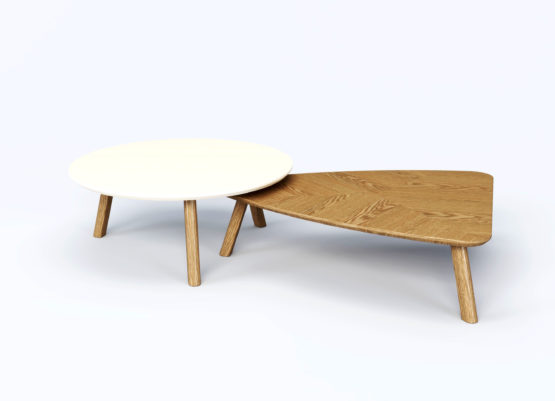 ∙ Τραπεζἀκι μέσης Gala από Fisiko, κατασκευασμένο από μασίφ ξύλο και λάκα, αποτελούμενο από σετ των 2, σε διαφορετικό σχέδιο και χρώμα.
