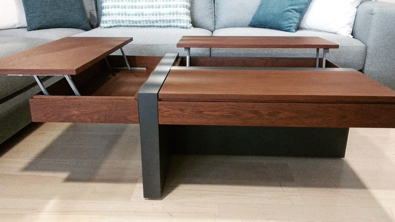 ∙ Τραπεζάκι μέσης Segreto από Deatro, κατασκευασμένο απο vintage δρυς και λάκα, αποτελούμενο από δύο σερβιτόρους κι ένα κρυφό συρτάρι, με δυνατότητα επιλογής στο χρώμα του ξύλου και της λάκας.