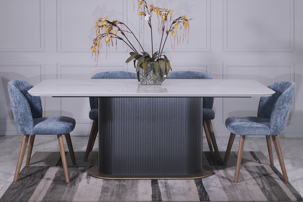 ∙ Η τραπεζαρία Clory με τα εντυπωασιακά μασίφ πηχάκια, τη μεταλλική λεπτομέρεια στη βάση και το κεραμικό καπάκι δημιουργούν ένα μοναδικό αποτέλεσμα μοντέρνας αισθητικής για το χώρο της τραπεζαρίας σας.