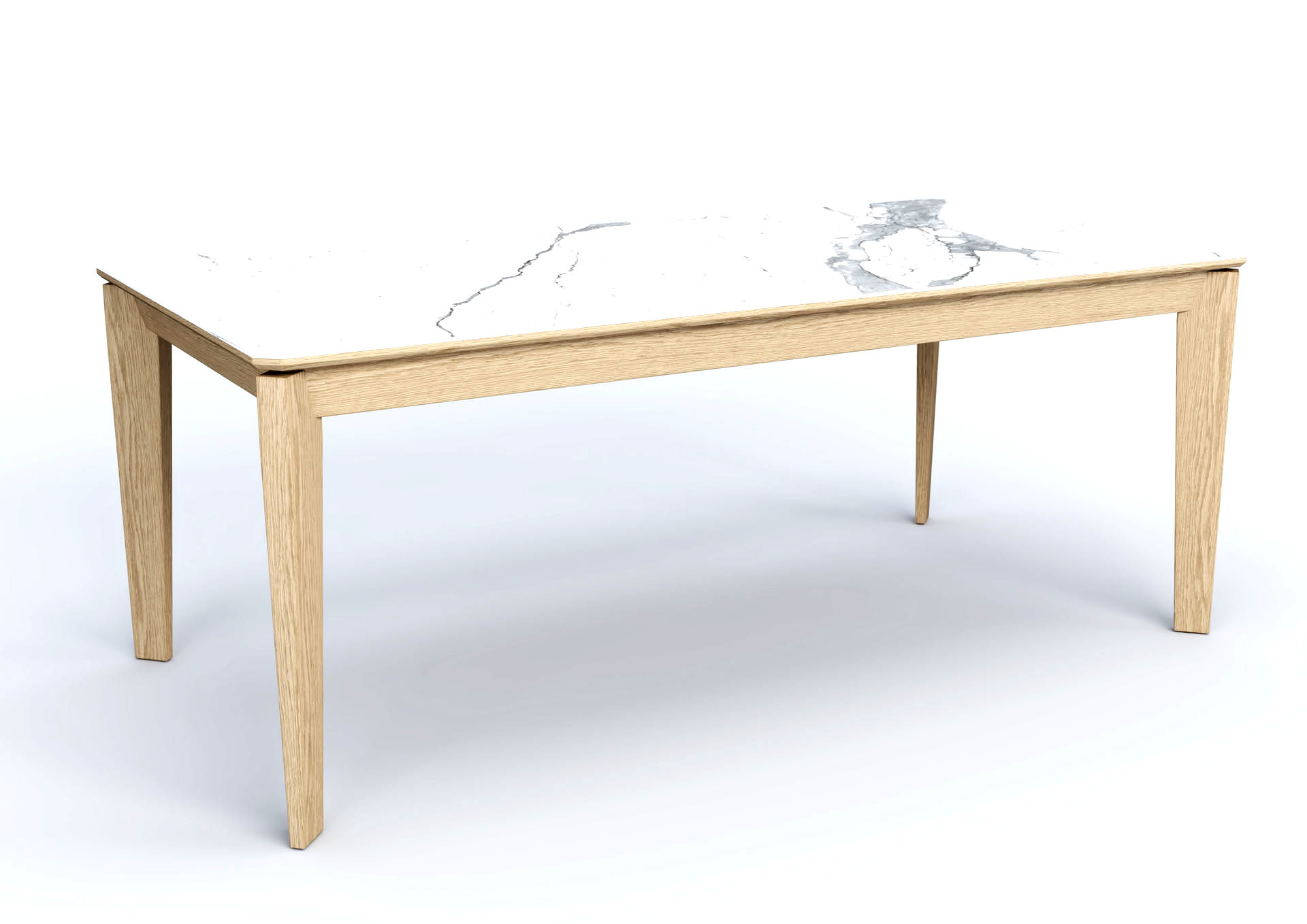 ∙ Τραπεζαρία Woody ceramic, κατασκευασμένη από μασίφ ξύλο, ανοιγόμενη, με καπάκι απὀ κεραμικό υλικό σε εφέ μαρμάρου.